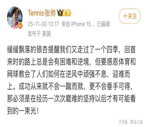 此外,对于外界关于自己为何不退赛昂热好好休息的讨论,张帅也用一句意味深长的话,变相进行了回应,“今天不努力工作,明天就努力找工作。”这么做,只想让自己“变得更强”。